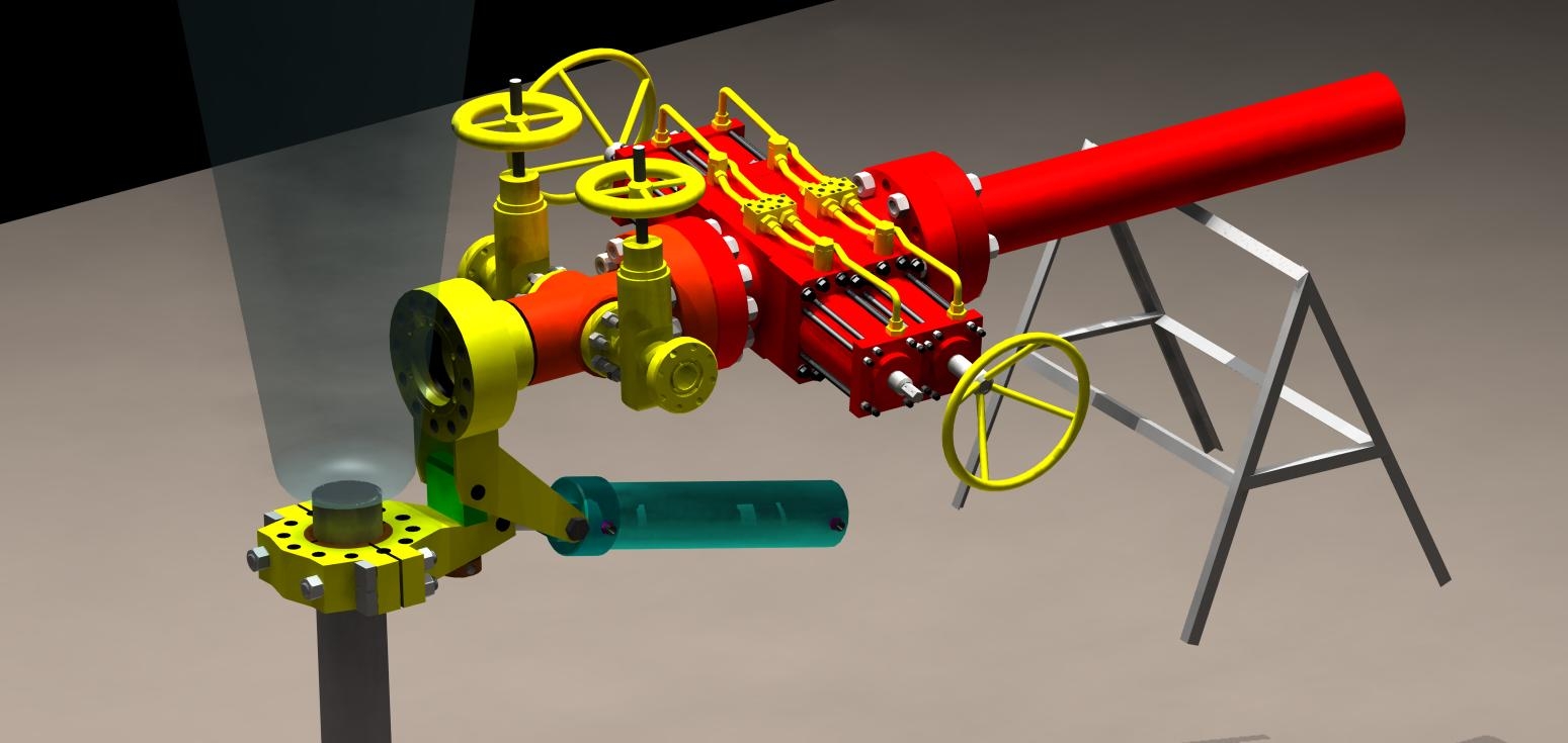 Натаскиватель предназначен для создания фланцевой базы на осадной трубе и наведение запорной компоновки на колонну обсадных труб, во время работ по ликвидации открытых нефтяных и газовых фонтанов на скважинах.